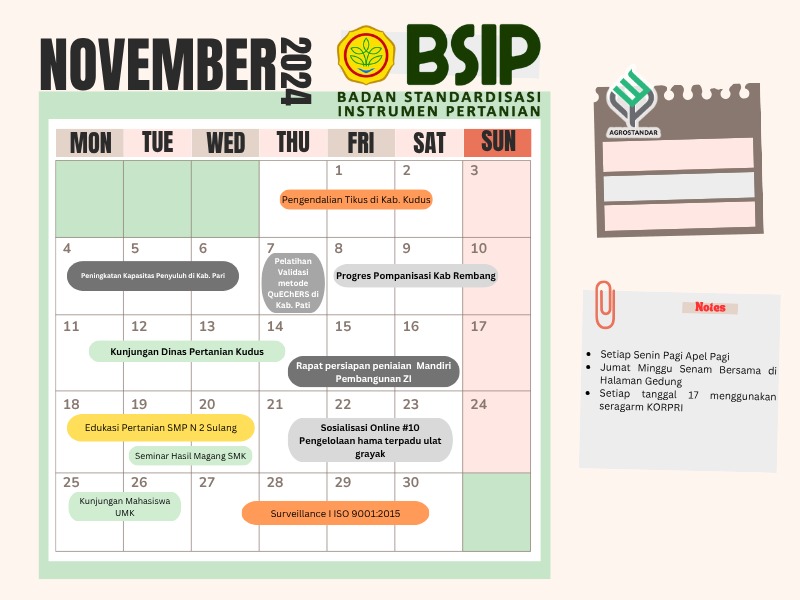 | 14 | 30 Nov 2024 | Agenda November 2024 | Daftar Agenda Bulan November 2024 BSIP Lingkungan Pertanian |