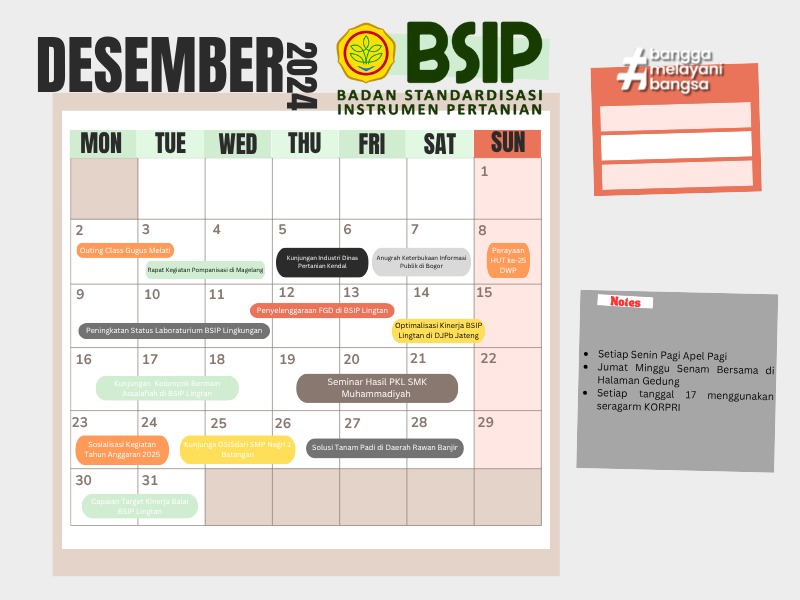 | 13 | 31 Dec 2024 | Agenda Desember 2024 | Daftar Agenda Bulan Desember 2024 BSIP Lingkungan Pertanian |