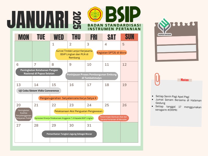 | 12 | 31 Jan 2025 | Agenda Januari 2025 | Daftar Agenda Bulan Januari 2025 BSIP Lingkungan Pertanian |