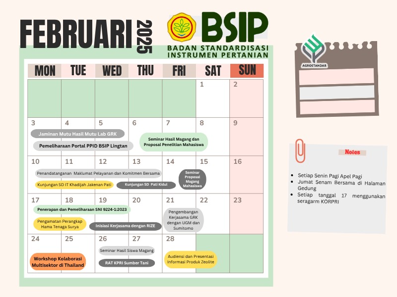| 11 | 28 Feb 2025 | Agenda Februari 2025 | Daftar Agenda Bulan Februari 2025 BSIP Lingkungan Pertanian |