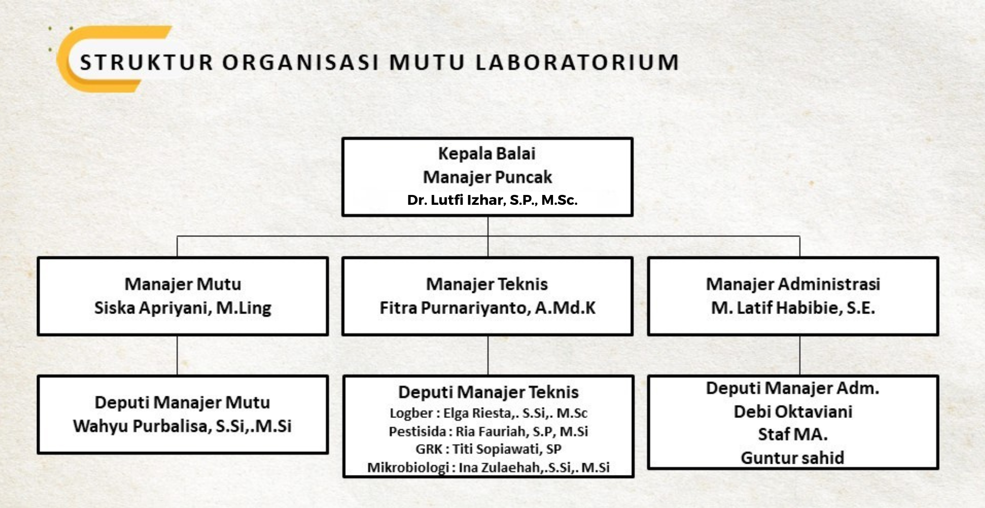 Struktur Organisasi dan Tata Kerja Laboratorium BPSI Lingtan berdasarkan SK Ka BPSI Lingtan B-17/OT.210/H.8.4/01/2024 Tanggal 2 Januari 2024